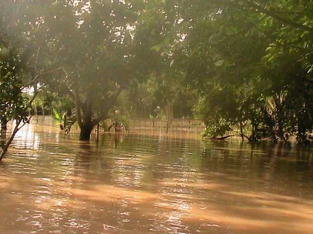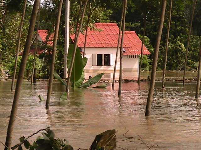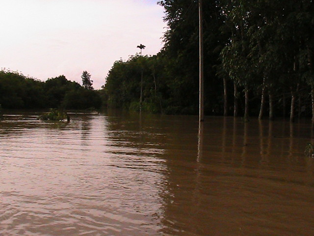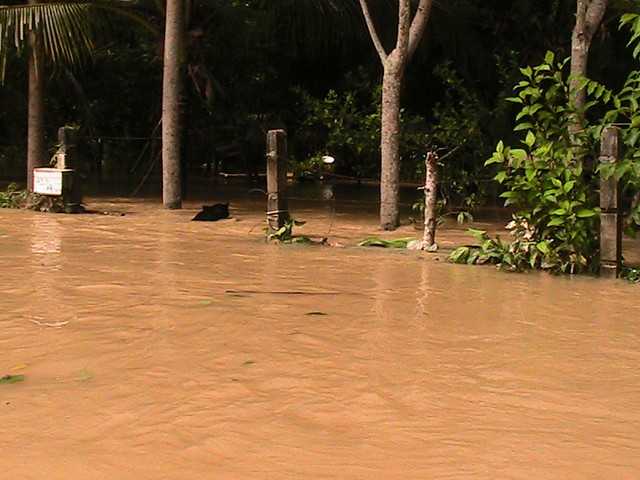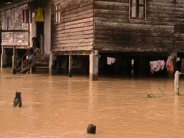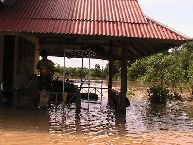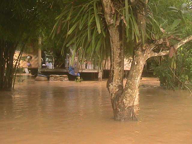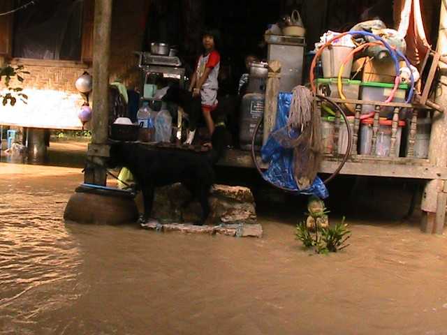 เช้า น้ำลดลงเรื่อย ๆ แต่ยังคงพ้นเอวอยู่ ส่วนภายในครัวประมาณหัวเข่า น้ำยังคงเชี่ยว แต่ค่อยลดลง