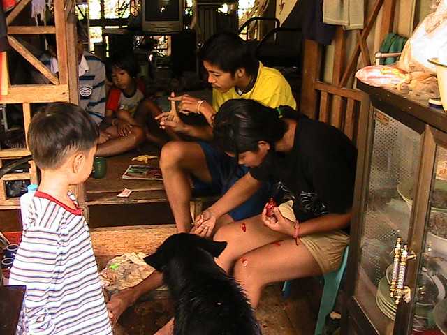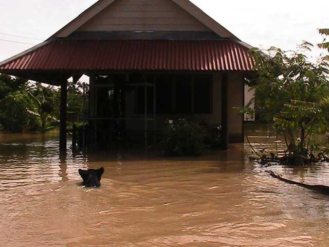 บ่าย บ้านพี่กุ้งน้ำเริ่มต่ำกว่าพื้นห้องนอน พี่กุ้งซึ่งย้ายมานอนที่บ้าน กลับไปล้างห้อง แตนกับแอวไปช่วยกันล้างบ้านแอว